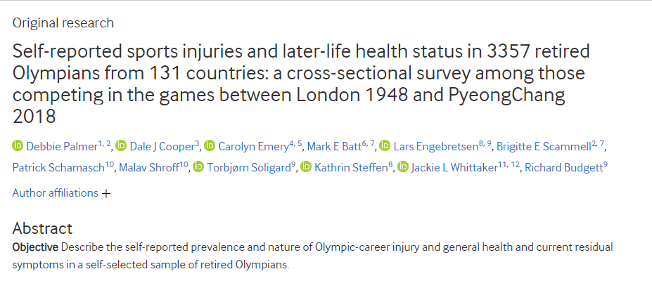 What are the impacts of injuries on later-life health and function? A study from 3357 retired Olympians #OpenAccess http://ow.ly/PNSw50Cgjfd